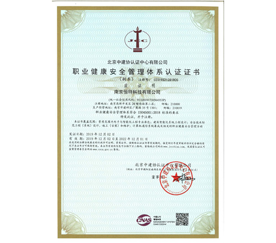 职业健康安全管理体系认证证书
